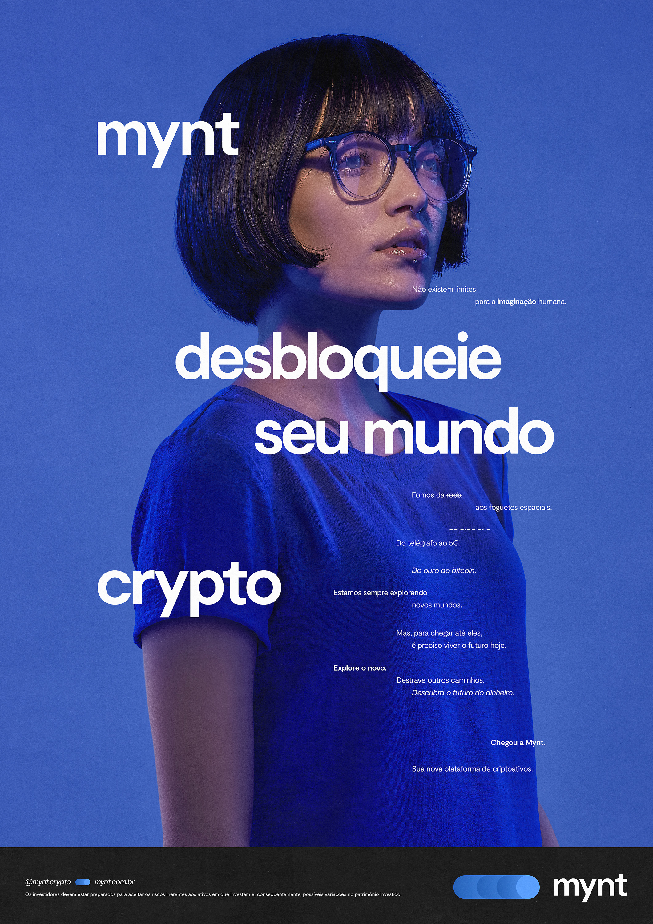 Campanha de lançamento da Mynt, plataforma de cryptoativos do BTG Pactual.